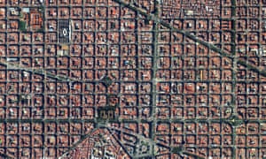 FacebookTwitterPinterest The Eixample district in Barcelona, Spain, is characterised by its strict grid pattern, octagonal intersections and apartments with communal courtyards. Photograph: Daily Overview/DigitalGlobe/REX Shutterstock