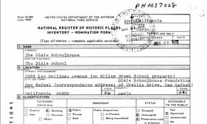 FacebookTwitterPinterest A 1972 application to get the Dixie Schoolhouse added to the National Registry of Historical Places. Photograph: Screen shot/Squarespace